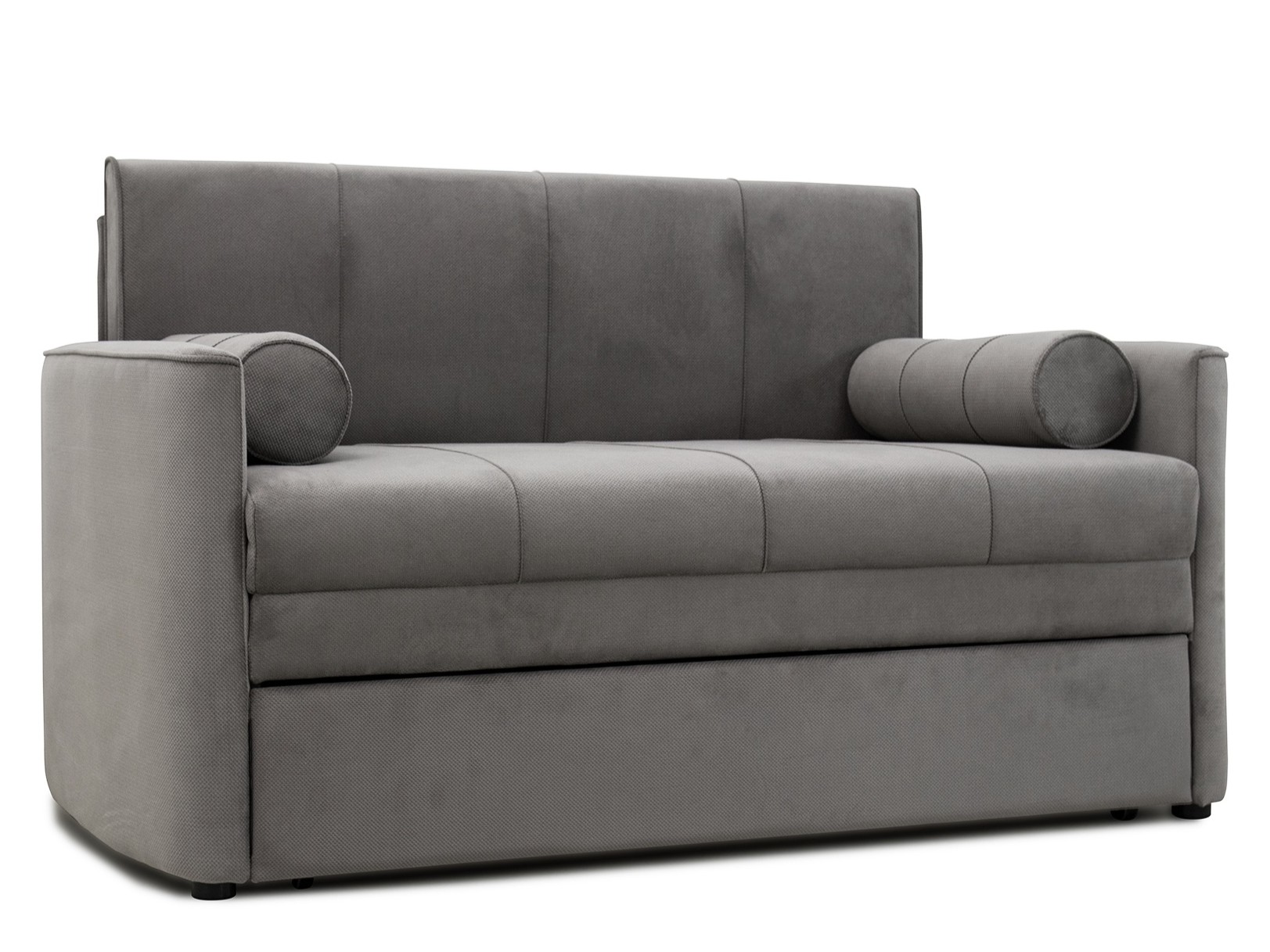 Габариты: сложенный (Д x Г х В, мм): 1450 x 800 x 840, разложенный (Д x Г х В, мм): 1450 x 2000 x 770, спальное место (Д x Ш, мм): 1950 x 1200, высота посадки (мм): 460, глубина сиденья (мм): 650, высота спинки (мм): 450, высота подлокотника от сиденья (мм): 120. Максимально допустимая нагрузка: 80 кг. Механизм трансформации: Выкатной с гнутоклееными латами. Бельевой ящик одно отделение, размер отделения (Д x Ш, мм): 1100 x 625 x 100. Варианты исполнения: 6 артикулов, сочетание тканей только как на фото, основная ткань: Киви (велюр) / Макс (велюр). Каркас: фанера, деревянный брус, ДСП, ДВП, ЛДСП, ДВПо. Основание сиденья: ППУ на основании из гнутоклееных лат. Декоративные подушки, шт: 2, наполнитель подушек: крошка ППУ и полиэфирное волокно «шарики». Материал опор: пластик. Цвет опор: черный. Высота опор (мм): 25