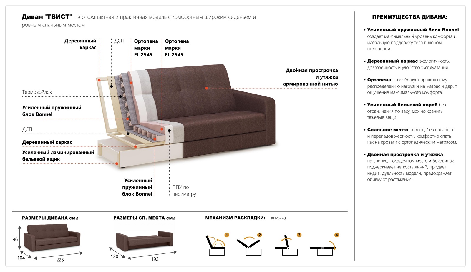 Чтобы купить прямой диван, который полностью соответствует вашим ожиданиям, рекомендуем учитывать следующие параметры: