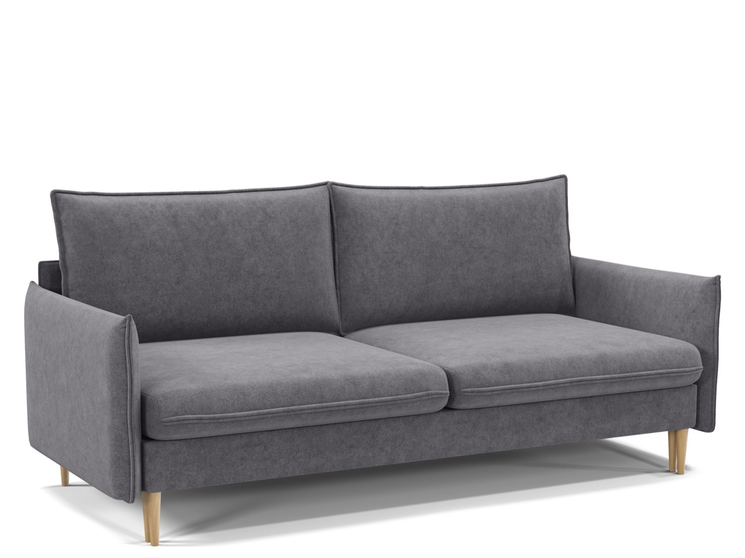 Узкие мягкие подлокотники экономят пространство. Декоративный кант по периметру боковин подчеркивает лаконичность дизайна и строгую геометрию линий.