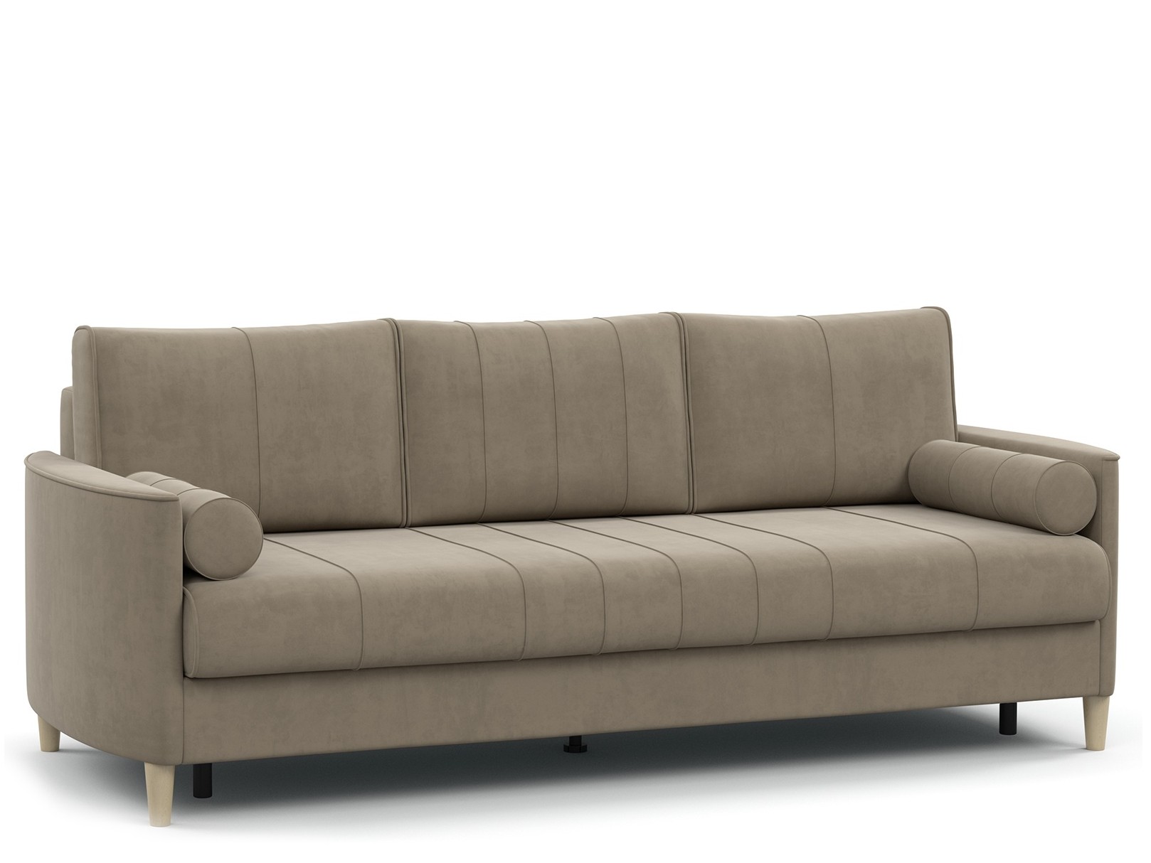 Габариты: сложенный (Д x Г х В, мм): 2200 x 970 x 850, разложенный (Д x Г х В, мм): 2200 x 1370 x 610, спальное место (Д x Ш, мм): 1910 x 1370, высота посадки (мм): 460, глубина сиденья (мм): 560, высота спинки (мм): 420, высота подлокотника от сиденья (мм): 170, максимально допустимая нагрузка: 80 кг на одно посадочное место, 100 кг на одно спальное место. Механизм трансформации: Еврокнижка с механизмом раскладки «тик-так». Бельевой ящик с перегородкой по центру (2 отделения). размер отделения (Д x Ш, мм): 786 x 688 x 120. Варианты исполнения: 6 артикулов, сочетание тканей только как на фото, основная ткань: Ультра (велюр). Каркас: фанера, деревянный брус, ДСП, ДВП, ЛДСП, ДВПо. Основание сиденья: ППУ на блоке плоских пружин «змейка», синтепон Приспинные подушки, шт: 3. Съемные чехлы приспинных подушек: есть, декоративные подушки, шт: 2, наполнитель подушек: крошка ППУ и полиэфирное волокно «шарики». Материал опор: лакированное дерево. Цвет опор: бежевый. Высота опор (мм): 120. Декор: Кант на торцах приспинных подушек, сиденья и подлокотников. Защипы на сиденье и приспинных подушках. Две декоративные подушки-валика с защипами.