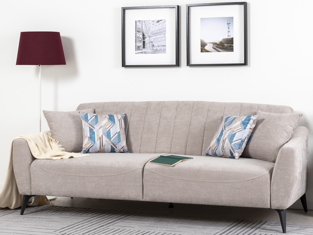 Габариты: сложенный (Д x Г х В, мм): 2290 x 920 x 880, разложенный (Д x Г х В, мм): 2290 x 1130 x 690, спальное место (Д x Ш, мм): 1920 x 1130, высота посадки (мм): 470, глубина сиденья (мм): 590, высота спинки (мм): 440, высота подлокотника от сиденья (мм): 220. Максимально допустимая нагрузка: 80 кг на одно посадочное/спальное место, 160 кг на диван. Механизм трансформации: Книжка. Бельевой ящик - размер отделения (Д x Ш, мм): 740 x 885 x 100. Варианты исполнения: 3 артикула, сочетание тканей только как на фото, основная ткань: Бордо (шенилл) / Оригами (микровелюр). Каркас: фанера, деревянный брус, ДСП, ДВП. Основание сиденья: ППУ на блоке плоских пружин "змейка". Приспинные подушки, шт: 2, декоративные подушки, шт: 2. Наполнитель подушек: крошка ППУ и полиэфирное волокно «шарики» .Материал опор: металл. Цвет опор: черный, высота опор (мм): 165. Декор: Стежка спинки 13 швов. Торец по верхней и боковым граням спинки пошит одинарным декоративным швом. Спинка радиусная. Сиденье скругленное, средней мягкости.