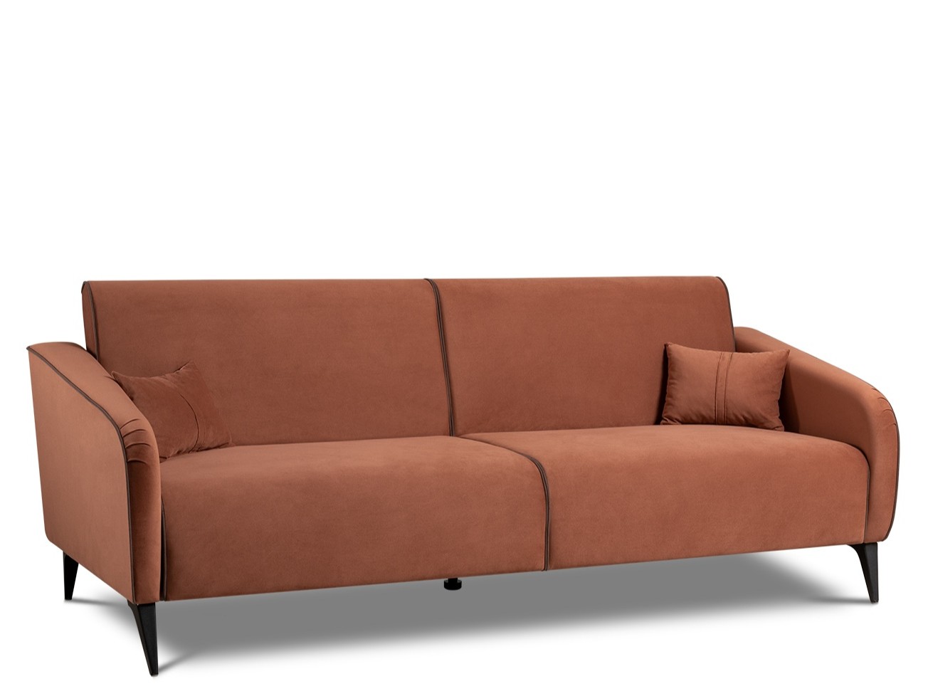 Габариты: сложенный (Д x Г х В, мм): 2210 x 910 x 860, разложенный (Д x Г х В, мм): 2210 x 1130 x 690, спальное место (Д x Ш, мм): 1920 x 1130, высота посадки (мм): 460, глубина сиденья (мм): 590, высота спинки (мм): 450, высота подлокотника от сиденья (мм): 150-220. Максимально допустимая нагрузка: 80 кг на 1 посадочное место. Механизм трансформации: Книжка. Бельевой ящик с перегородкой по центру (2 отделения),размер отделения (Д x Ш, мм): 740 x 885 x 885. Варианты исполнения: 5 артикулов, сочетание тканей только как на фото, основная ткань: Velutto (велюр). Каркас: фанера, деревянный брус, ДСП, ДВП. Декоративные подушки, шт: 2, наполнитель подушек: крошка ППУ и полиэфирное волокно «шарики». Материал опор: металл. Цвет опор: черный. Высота опор (мм): 165. Декор: Спинка и сиденье разделяются пополам двойным кантом по центру и одинарным по краям сидения, для придания одной единой формы. Подлокотники с изгибом на лицевой стороне и мягкими закругленным углом со складками, с выраженным контрастным ровным кантом по внешнему контуру изделия и изогнутой линией канта.