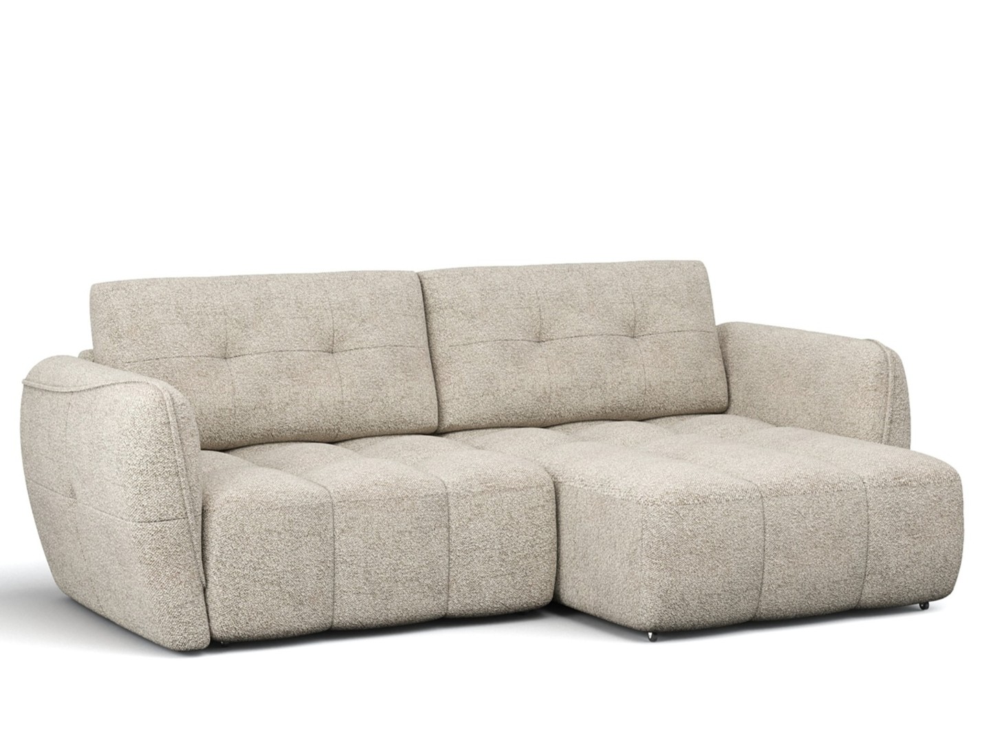 - В качестве обивочной ткани используется букле с невысокими мелкими завитками и эффектом меланжа – сочетание светлых и темных волокон придают изделию объемность и легкость. Ткань обладает улучшенными качественными характеристиками: супермягкость, простой уход, высокая плотность ткани – от 350г/кв.м, износоустойчивость 35000 циклов по Мартиндейлу.