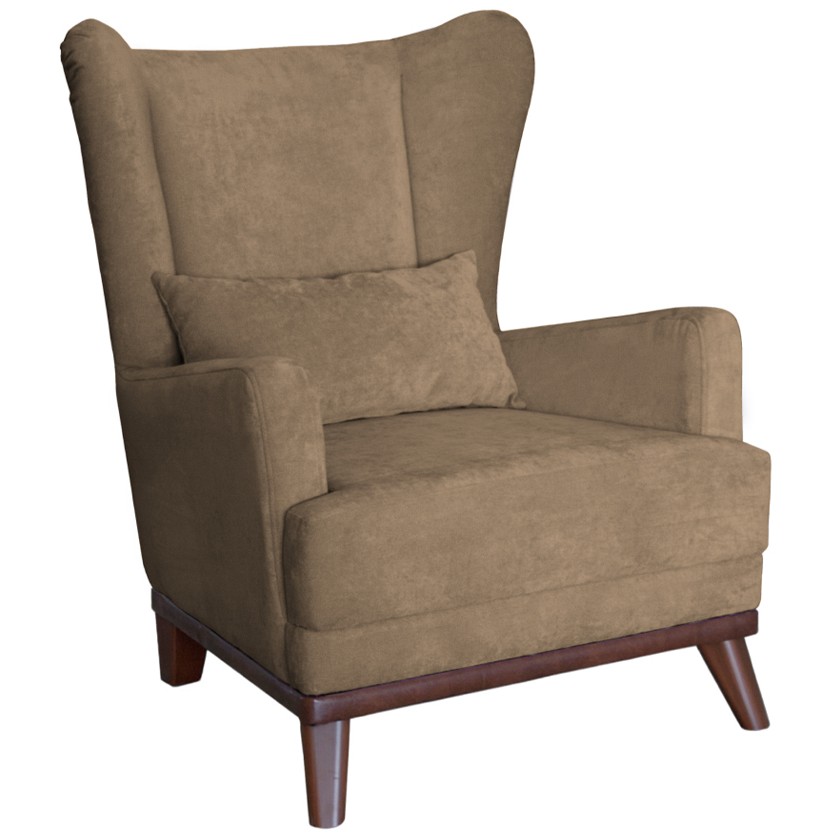 Габариты: (Д x Г х В, мм): 740 x 900 x 910, высота посадки (мм): 400, глубина сиденья (мм): 580, максимально допустимая нагрузка: 100 кг. Ширина сиденья между подлокотниками (мм): спереди 530, сзади 430. Варианты исполнения: 5 артикулов, сочетание тканей только как на фото, основная ткань: Velutto (велюр). Каркас: фанера, деревянный брус, ДСП, ДВП. Основание сиденья: ППУ на блоке плоских пружин "змейка", декоративные подушки, шт: 1, наполнитель подушек: крошка ППУ и полиэфирное волокно «шарики» . Материал опор: пластик, цвет опор: коричневый. Декоративная отстрочка, царга обита кожзамом.