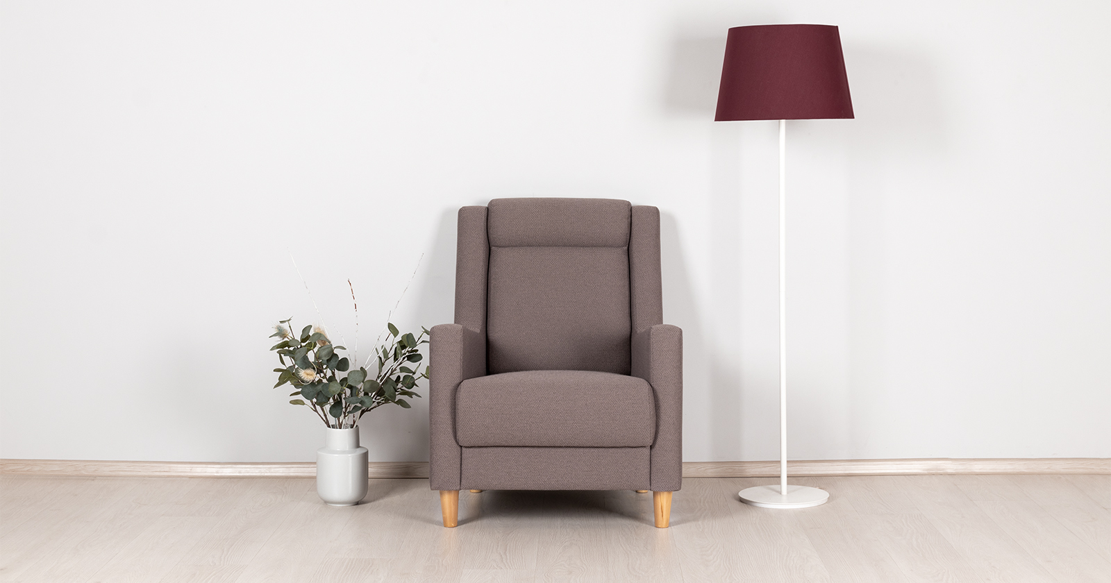 Минималистичный дизайн: строгие геометрические формы, минимум декоративных элементов. Комфорт: глубокая мягкая посадка диванов и кресла, кресло с мягким подголовником и поддержкой поясничной зоны, удобные декоративные подушки, мягкий и приятный на ощупь велюр Лаунж. Функциональность: полноценное двухспальное место при минимальных габаритах, практичный износостойкий велюр обивки. Экологичность: опоры из натурального дерева (массив березы), высококачественные экологически чистые материалы каркаса, наполнения сидений и подушек. Ткань основы Сага (рогожка) - состав: полиэстер (PES) 100%Количество циклов истирания: более 30 000. Основные преимущества: высокая износостойкость, легкая чистка.