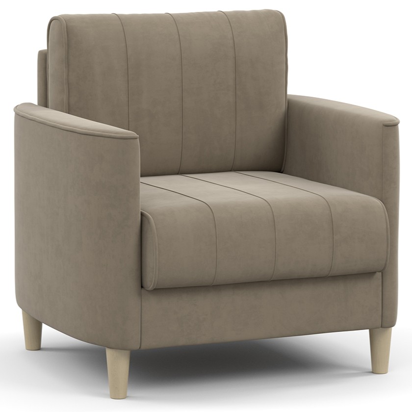 Габариты: (Д x Г х В, мм): 840 x 780 x 830, высота посадки (мм): 440, глубина сиденья (мм): 510, высота спинки (мм): 420, высота подлокотника от сиденья (мм): 190, максимально допустимая нагрузка: 100 кг. Варианты исполнения: 6 артикулов, сочетание тканей только как на фото, основная ткань: Ультра (велюр). Каркас: фанера, деревянный брус, ДСП, ДВП, МДФ. Основание сиденья: ППУ на блоке плоских пружин «змейка», синтепон. Приспинные подушки, шт: 1, съемные чехлы приспинных подушек: есть, наполнитель подушек: крошка ППУ и полиэфирное волокно «шарики». Материал опор: лакированное дерево. Цвет опор: бежевый, высота опор (мм): 120