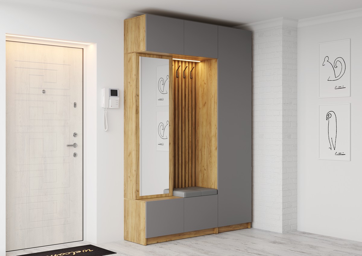• Внутри антресоли и тумбы есть перегородки, которые делят проем пополам и являются дополнительным ребром жёсткости