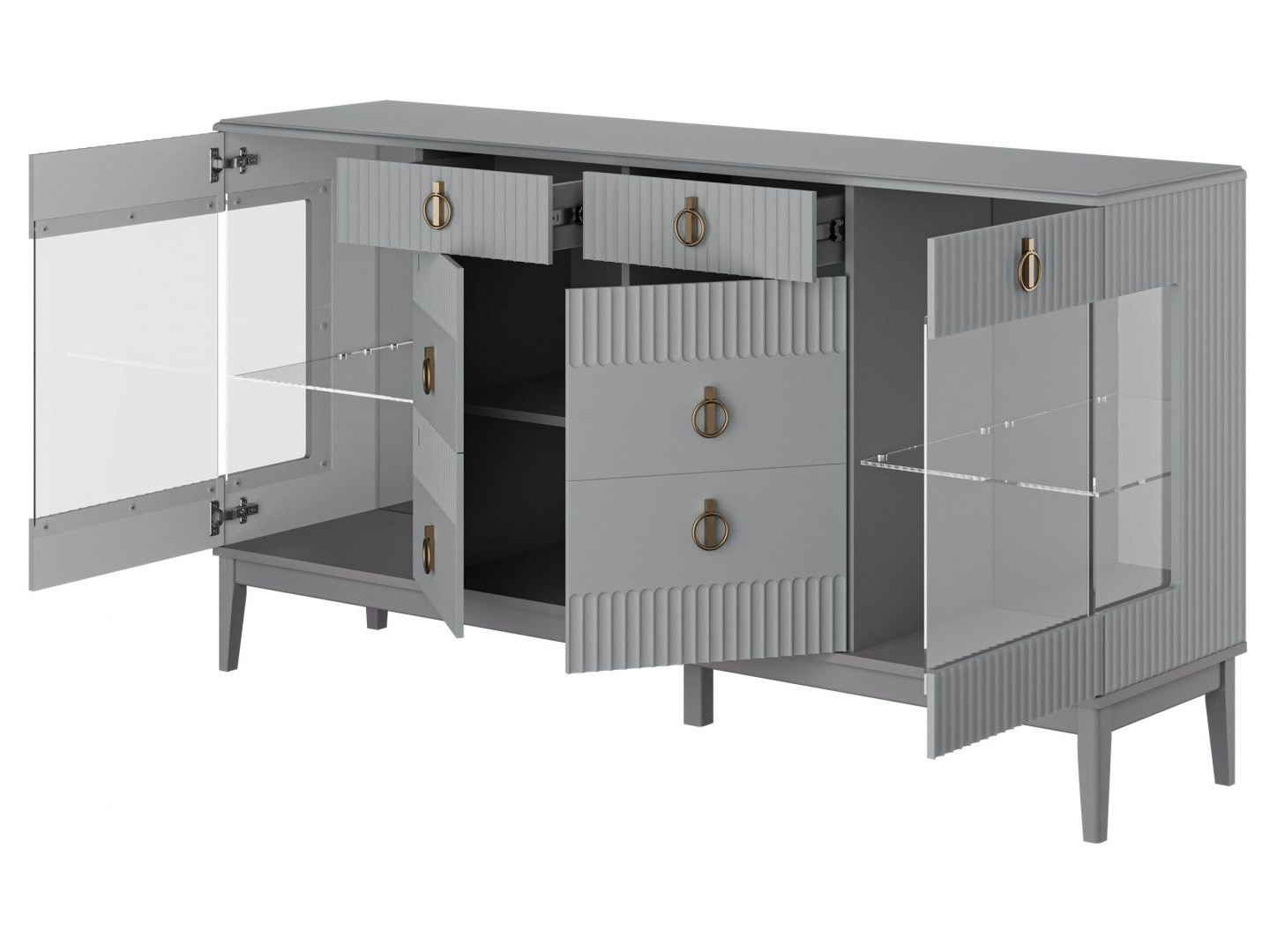 Шкафы выполняются из ЛДСП, МДФ, ДСП, мебельных щитов с применением добротной импортной фурнитуры и комплектующих деталей. В ассортименте представлены шкафы прямого и углового размещения, шкафы-купе, витрины. Самым впечатляющим элементом таких изделий является фасад, который может быть глухим, стеклянным, зеркальным, комбинированным, с напылением, фотопечатью, рельефной или плосковыемочной резьбой по дереву. В эксклюзивных, дорогих моделях шкафов фасад выполняется с включением позолоченных элементов, шелкографии, ручной росписи цветными патинами, комплектацией зеркалами Тиффони. Для таких вариантов больше подходят распашные двери. Модели шкафов-купе обязательно комплектуются раздвижной системой открывания.