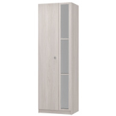 Кромка – 0,45 мм. Ручки – накладные, пластик. Опоры – подпятник, пластик. Петли створок – накладные. Зеркало - фацет. Максимальная нагрузка на полку - 10 кг, на штангу - 10 кг.