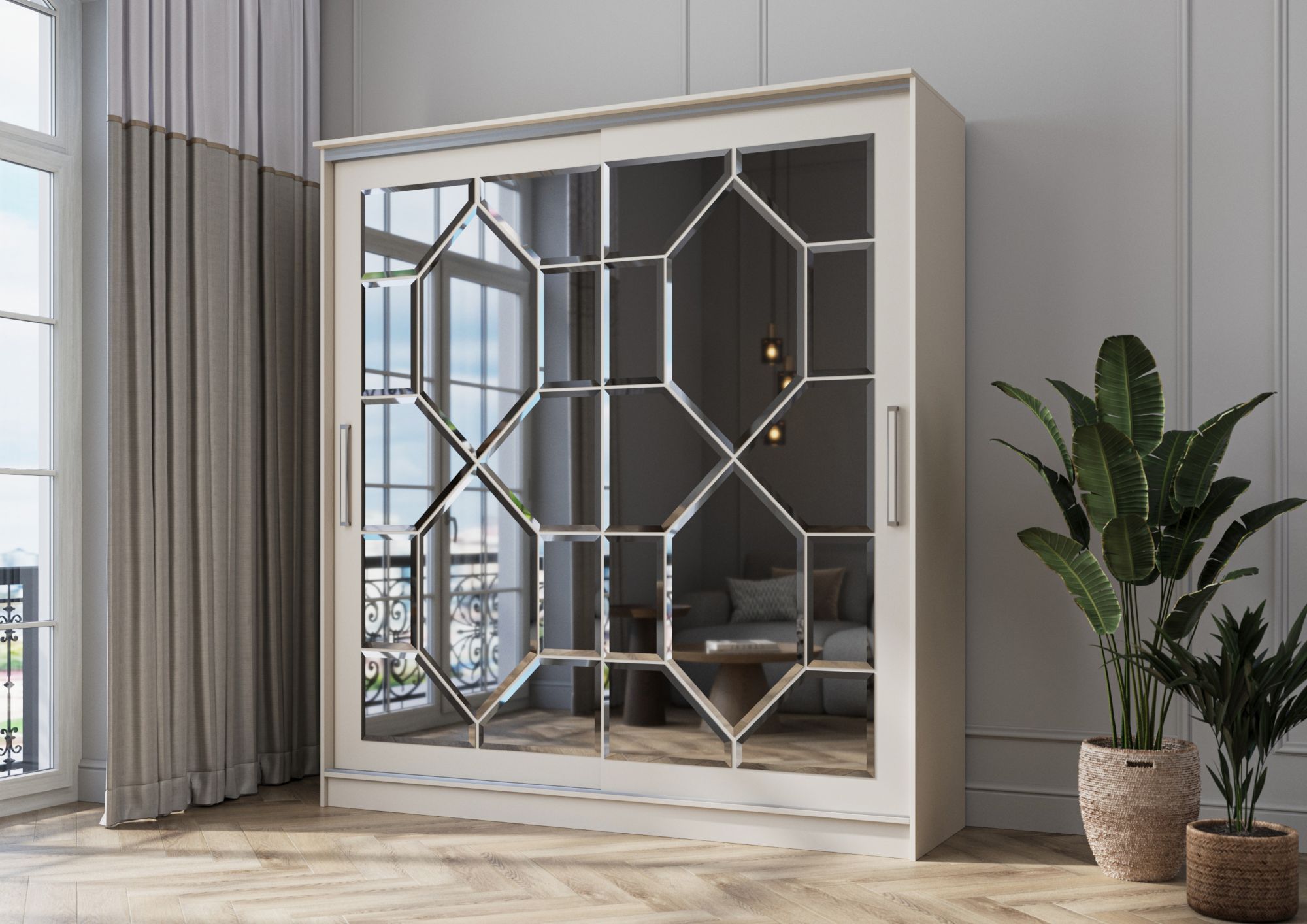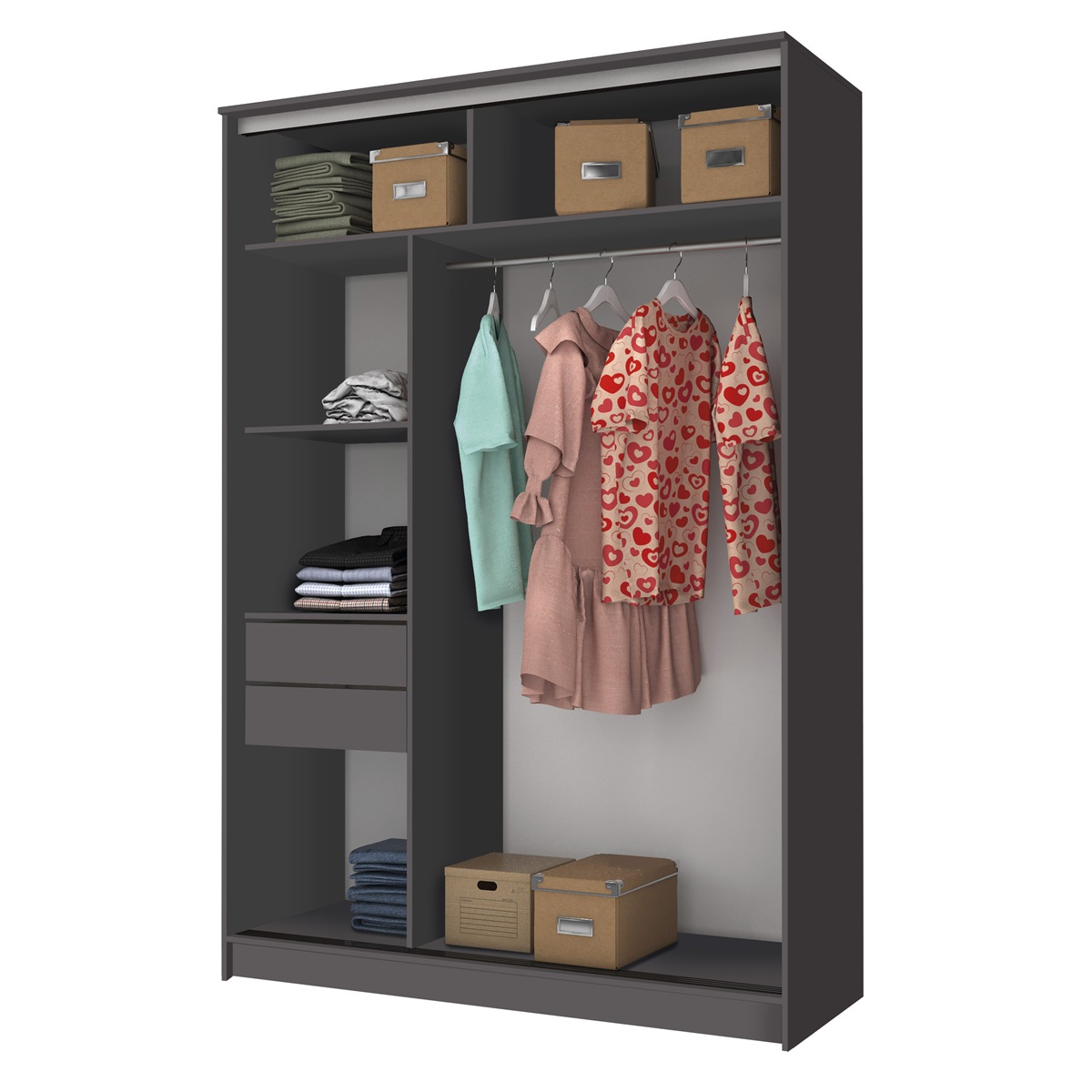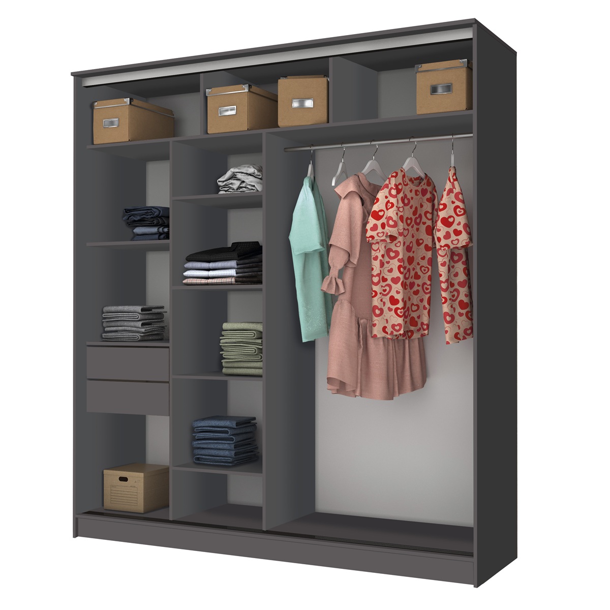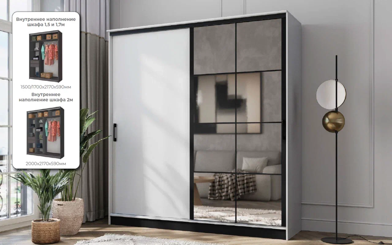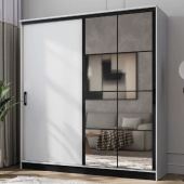 В нашем интернет-магазине mebelinet.com продаются шкафы-купе из ЛДСП (у бюджетной) и МДФ (у мебели с более высокими ценами). Алюминиевый профиль, качественные ролики и уплотнитель позволяют раздвигать двери плавно и бесшумно. Наполнение шкафа-купе организовано полками, перекладинами, пантографами, корзинами и т.д. Поэтому вы сможете грамотно уместить все вещи.