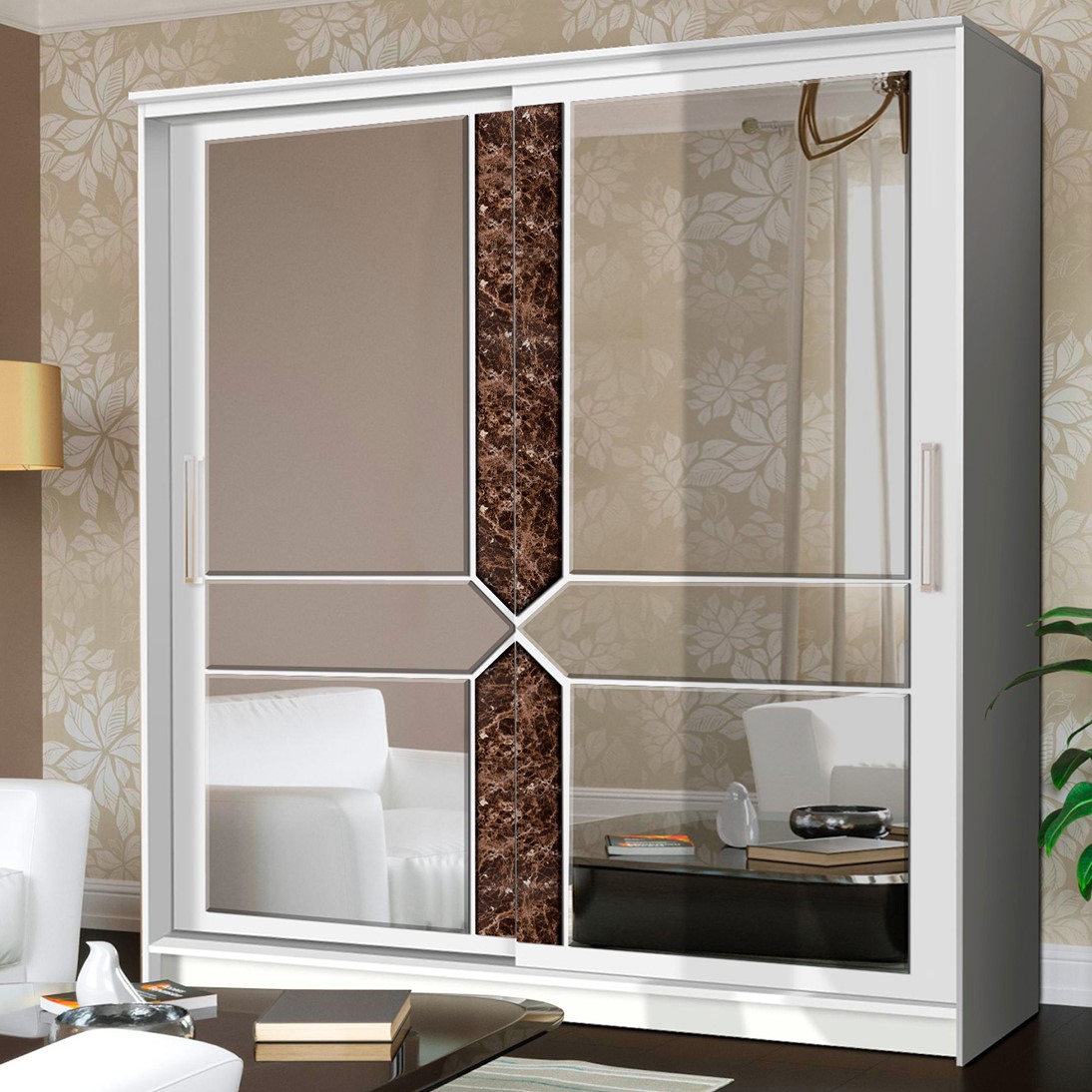*Надежные металлические направляющие Альянс. Зеркала с фацетом клеятся на фабрике. Стекла с фотопечатью "Мрамор".