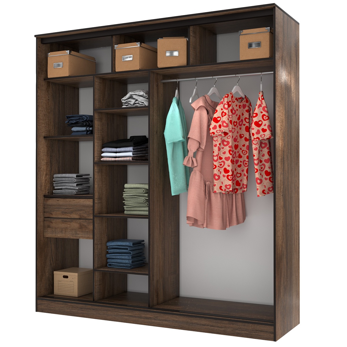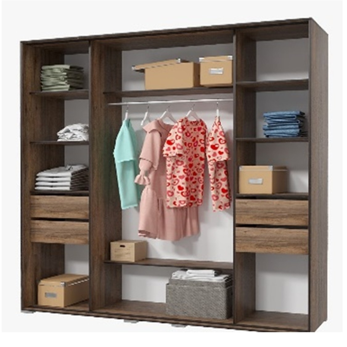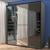 В нашем интернет-магазине mebelinet.com продаются шкафы-купе из ЛДСП (у бюджетной) и МДФ (у мебели с более высокими ценами). Алюминиевый профиль, качественные ролики и уплотнитель позволяют раздвигать двери плавно и бесшумно. Наполнение шкафа-купе организовано полками, перекладинами, пантографами, корзинами и т.д. Поэтому вы сможете грамотно уместить все вещи.
